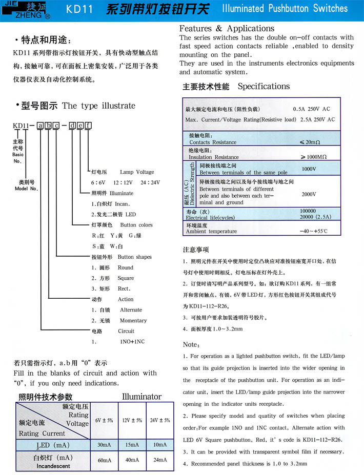 產(chǎn)品型號(hào):KD11系列帶燈按鈕開關(guān)