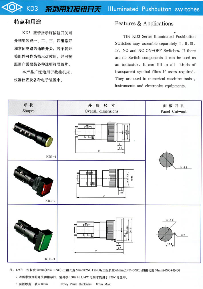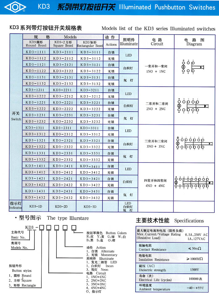 產(chǎn)品型號(hào):KD3系列帶燈按鈕開