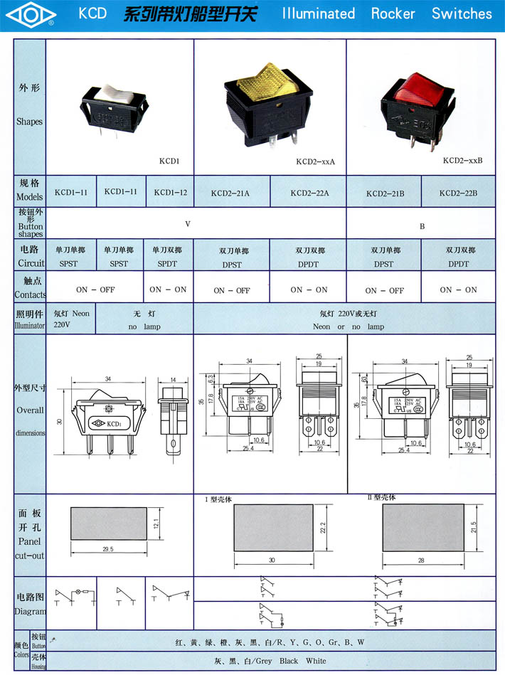 KCD1/KCD2-xxA,xxB帶燈船型開關