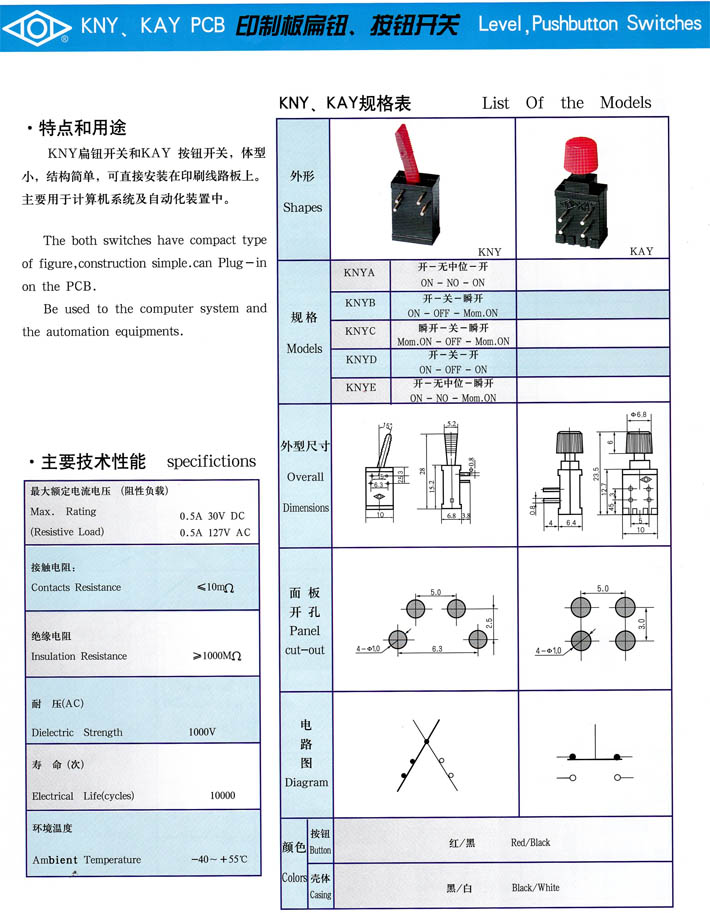• KAY印制板按鈕KNY扁鈕開關(guān) 產(chǎn)品型號:KAY印制板按鈕KNY扁鈕開關(guān)
